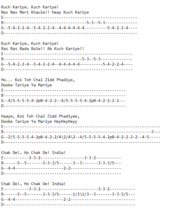 by: chordsPosted on: January 23, 2026Chak De India Guitar Tabs How useful was this post? Click on a star to rate it! Submit Rating Average rating 0 / 5. Vote count: 0 No votes so far! Be the first to rate this post.